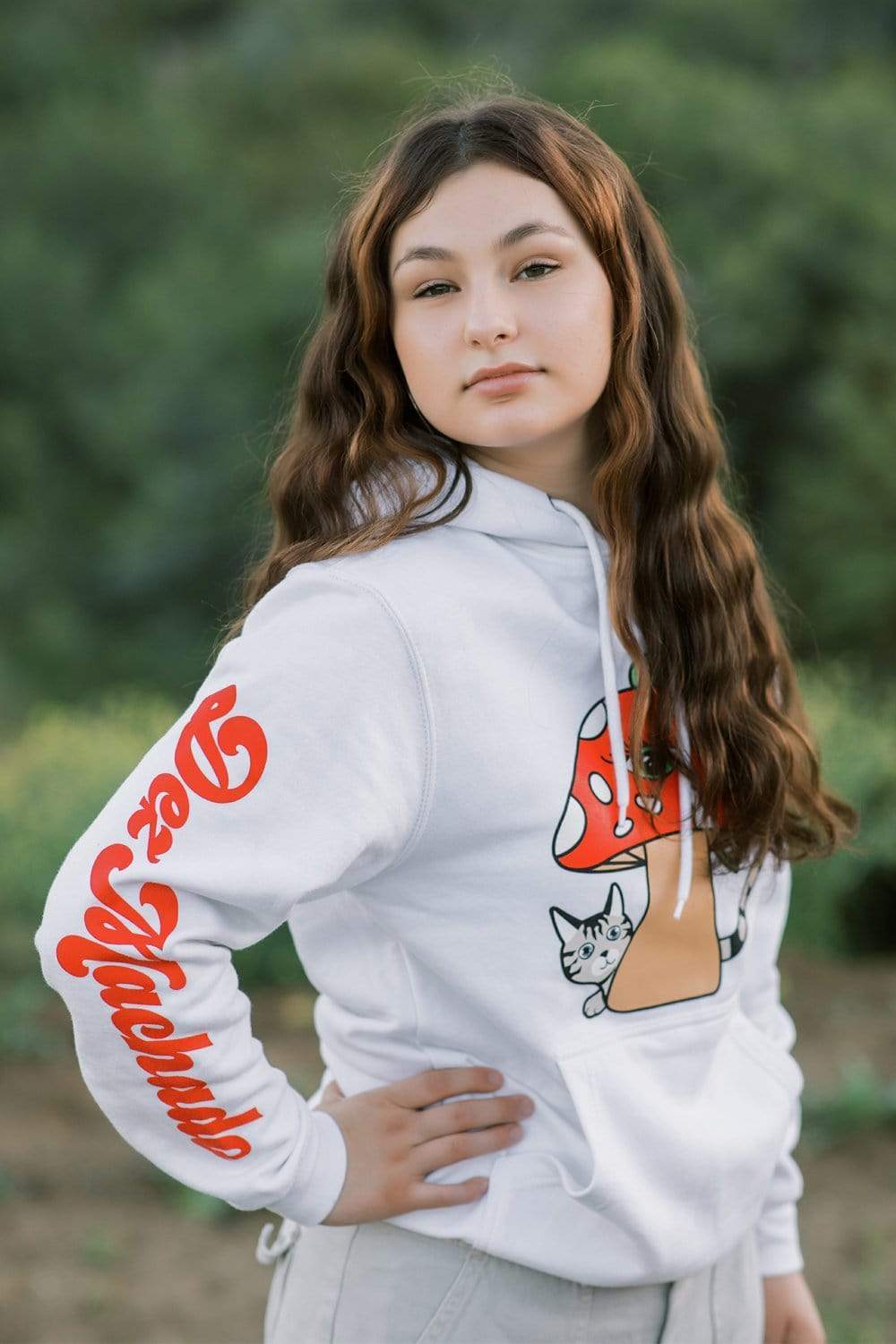 • Load image into Gallery viewer, Dez Machado 'Big Mushroom' White Hoodie